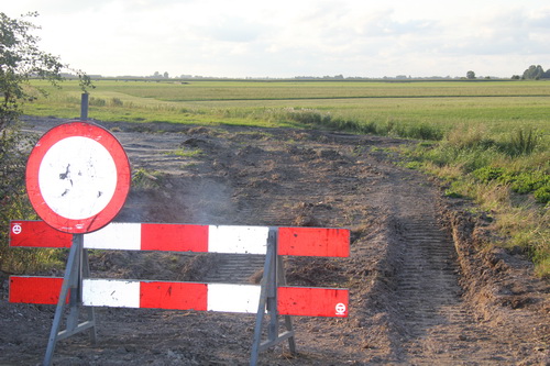 De oude N355 overgestoken en kanaalweg noord vervolgd…. Op de hoek bij de hoeve van Agema zicht op het talud van de nieuwe N355…..