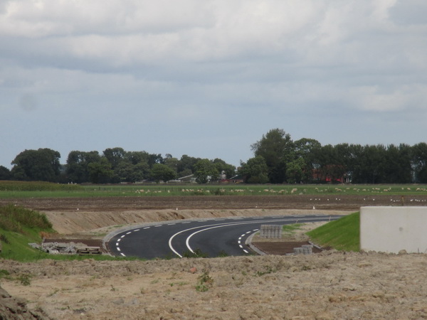 Vanaf de ‘noodweg’ blik gericht naar het oosten. De verlegde N355 ligt kant en klaar te wachten op in gebruik name…