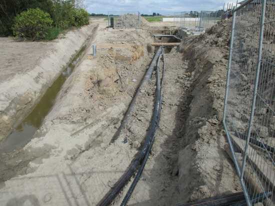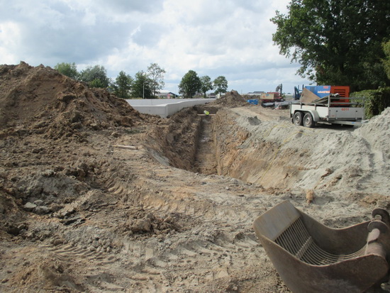 De sleuf voor de waterleidingbuizen aan de noordwestkant…