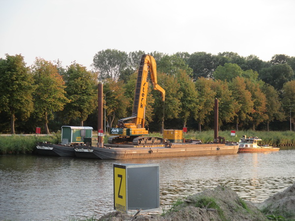 De kraanmachinist van Martens en Van Oord doet er nog een schepje bovenop, hij is laat bezig. Het baggeren gaat door tot november, dan is ook die klus geklaard, naar verwachting.