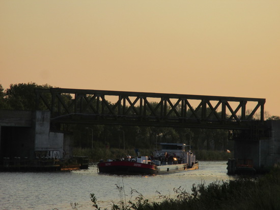 Ik kiek niet verder, slenter naar huis langs de file voor de brug… Het verkeer wacht niet alleen voor de “Destiny”, maar ook voor de achteruit varende “Con Zelo” (= met ijver, maar erg snel gaat het natuurlijk niet…)