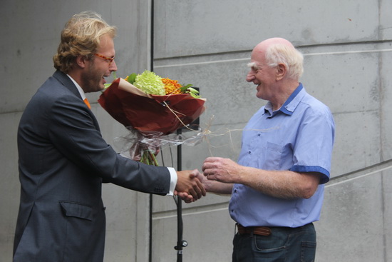Prachtige bloemen voor een stralende Lammert Kruizinga, en ook nog cadeaubonnen ter waarde van 100 euro! Ja, waaraan moet ie die nou besteden??! Lammert lacht, niet alleen in zijn vuistje, thuis moet ie (bijna) niet meer bijgekomen zijn van het lachen…