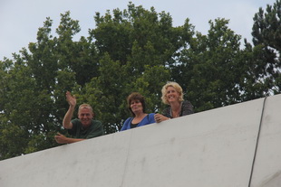 Links de VIP-tribune met oud-voetballer Wim, oud-leerlinge Marjan en oud-Ronde-van-Noordhorn-organisator Digna! Oud??! JONG!!
