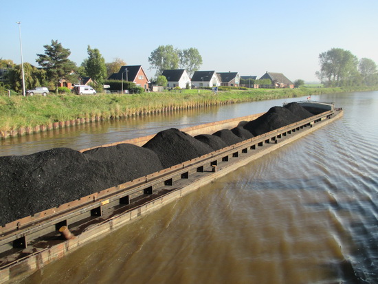 Vrijdagmorgen, uur of half tien, tien uur… Als ik terugkeer uit het grootdorp, moet ik enkele minuten wachten voor de geheven tafelbrug. Niet zo’n probleem, ’t is mooi weer… Er glijdt een lange schuit met “zwart goud” richting de NVH-brug. Bevoorrading kolencentrale, of zijn er andere bedrijven die steenkool als brandstof verbruiken?!