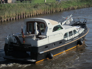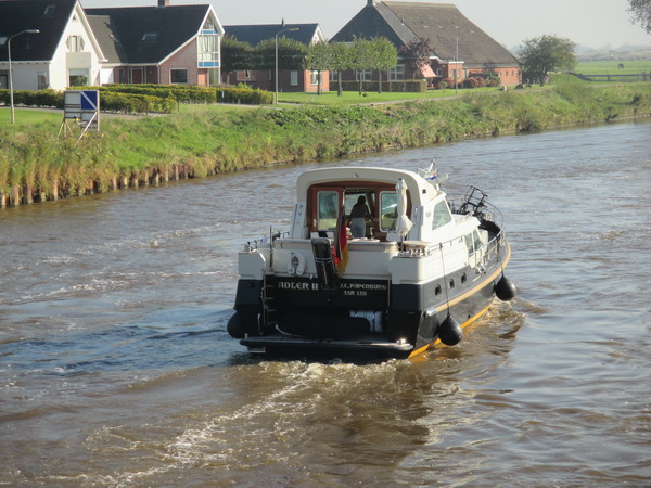 Na de beroepsvervoerders volgt deze Duitse plezierboot, uit Papenburg.