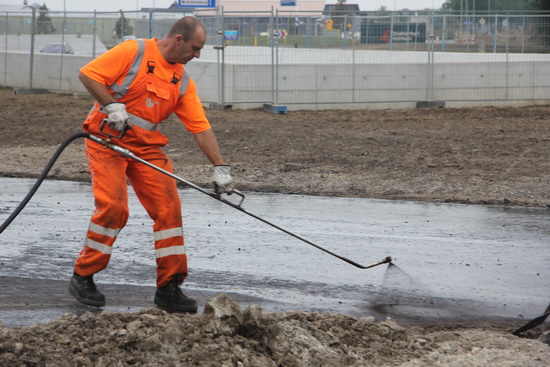 Zou dit het “plakken” van het asfalt bevorderen??! Het is in ieder geval geen onkruidverdelging of ongediertebestrijding…