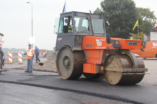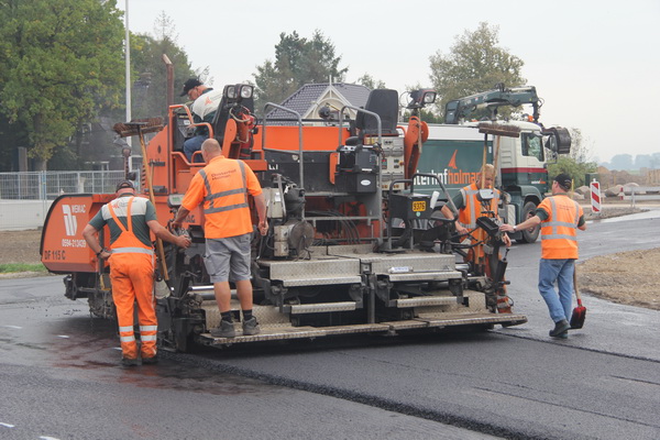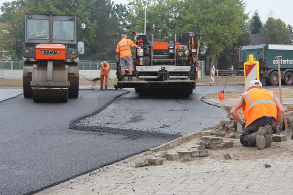 De laatste verleggingsloodjes bij het tunnelterrein. Definitief asfalt op de Industrieweg (oost) en het aansluitende deel van de oude N355. Vrijdag jongstleden was de aansluiting naar/van de Langestraat Zuid al gedaan. Met het oog op de 4500 wandelaars die zondags langs zouden komen?!