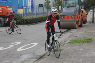 De wegwerkzaamheden vormen een streep door de rekening van slecht voorbereide verkeersdeelnemers… Sommigen, zoals deze wielrenners, weten daar wel raad mee: Even een sluiproute volgen langs het Tinq-benzinestation en dan bij het fitnesscentrum langs, terug op het fietspad…. Tocht vervolgen…