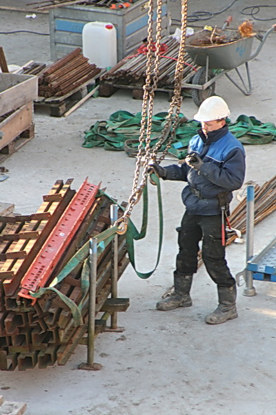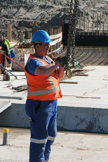 René assisteert bij het hijsen met de superkraan aan de oostkant van de tunnel