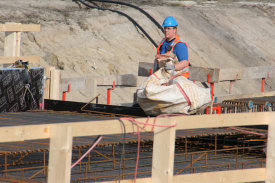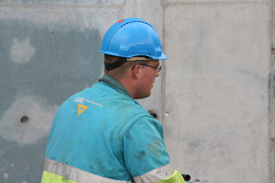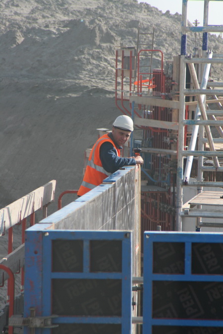 René aan het egaliseren bij de noordelijke pijler langs het Van Starkenborghkanaal.