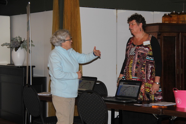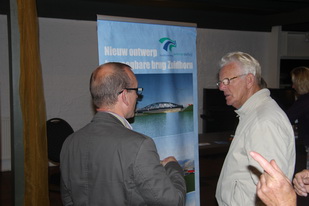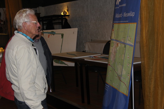 Jaap Dompeling gaat nog eens te rade bij de stand over de nieuwe, beweegbare brug tussen Noord- en Zuidhorn. Vragen over en belangenbehartiging van fietsers en wandelaars, wachtend voor de brug. Zou het nou niet zo kunnen dat….