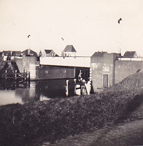 Tafelbrug Noord-Zuidhorn vanaf de zuidwestkant! September 1948….. (Het brugwachtershuisje zit aan de noordoostkant van de brug!)
