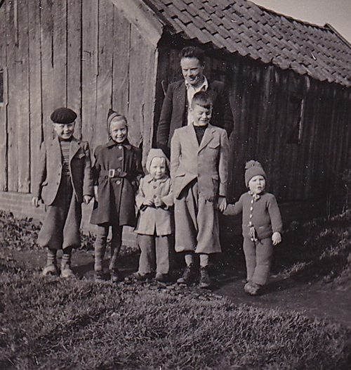 Een bijzondere foto, technisch al heel wat beter dan vele voorgaande! Ook uit 1948! Leendert Lodewegen schreef hier alleen maar bij: ‘Overburen’. Vijf kinderen en een vader, maar wie zijn het???!