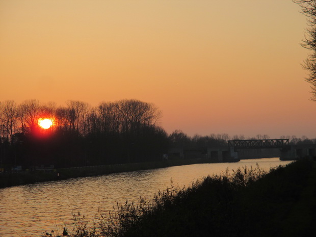 Zonsondergang op donderdagnamiddag 20 november jongstleden, gekiekt vanaf de kanaalweg (noord).