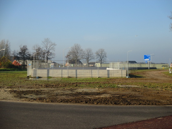 Het nog niet beplante terrein rond de tunnelmond aan de noordwestkant. En dat wordt “straks” weer onkruid verdelgen….. De geplaatste bouwhekken blijven zolang er nog geen oplossing is die en de veiligheid en de geluiddemping bevredigt….