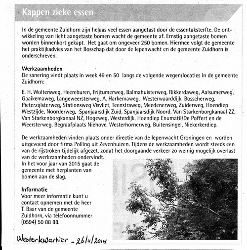 Informatie vanuit de Informatiepagina van de Gemeente Zuidhorn in “Westerkwartier” 26 november 2014: