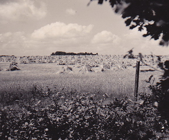 Alleen het simpele feit al dat hier de korenschoven in hokken op het land staan, brengen bij mijzelf herinneringen uit Oost-Groningen naar boven. Als kind met buurkinderen tikkertje of verstoppertje spelen, de vlieger (“droake(r)”) oplaten…., voor op de boerenwagen achter de paarden zitten. als het koren werd binnengehaald….