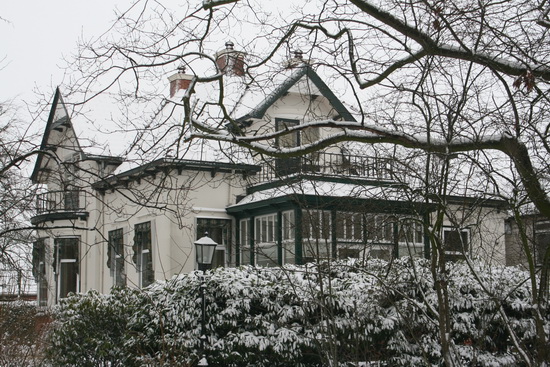 Nog eens de besneeuwde Moeshorn, maar nu vanaf de Nieuwstraatzijde…..
