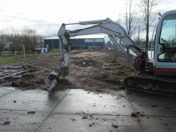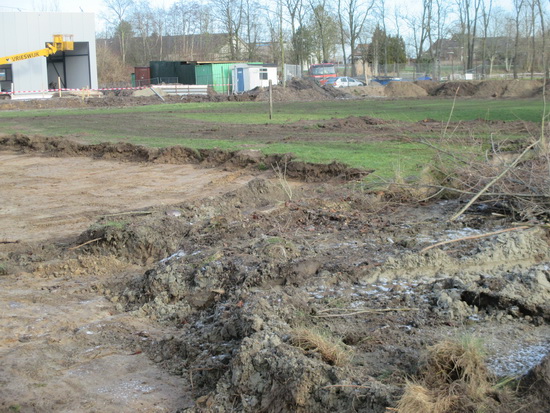 De ruimte aan de Industrieweg tussen de BE-JO hal en de Veilinghal van Hoeve wordt geëgaliseerd in opdracht van de firma Kooi. Als ik het goed heb begrepen, is het nu nog niet de bedoeling hier een of twee nieuwe bedrijfshallen te realiseren.