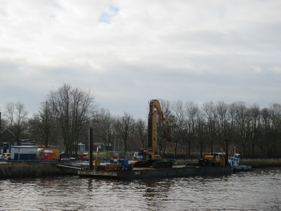 De firma STERK (“Sterk in heiwerk”) is actief aan de overkant van het kanaal bij de entree van het sportcomplex. Definitief herstel van de kanaaloever waar de nieuwe buizen van Gasunie en Enexis zijn ‘verzonken’?!