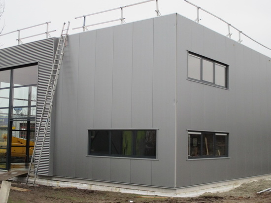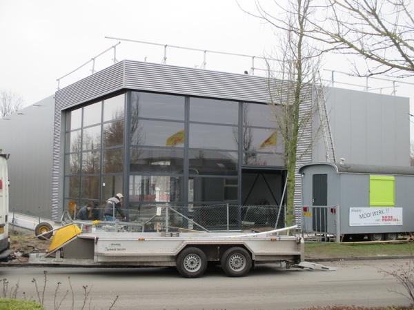 De nieuwe bedrijfshal van BE-JO heeft de glaszetters op bezoek gehad! Ziet er meteen anders uit, ik vind het geen lelijke hal.