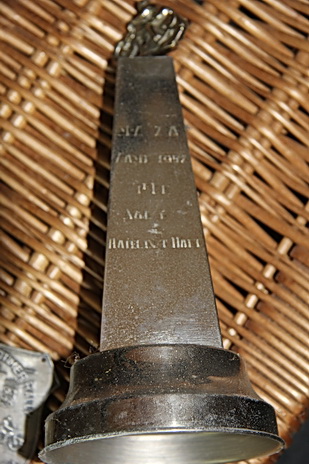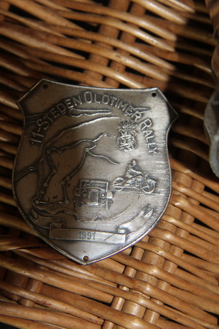 Links een medaille van een 11 Steden-Oldtimer Rally in 1991, rechts een bokaal van een Toertocht in 1947.