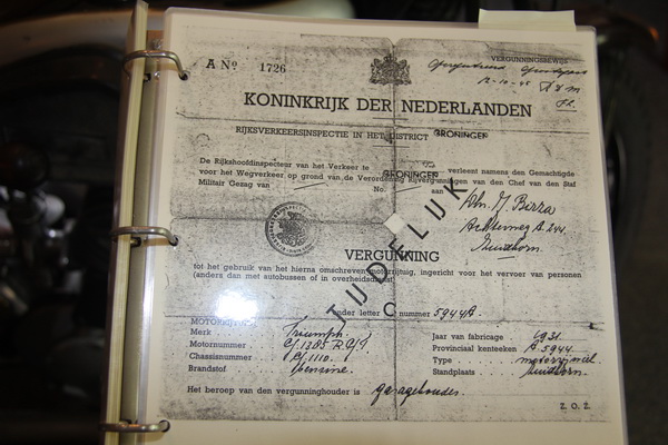 Om direct na de oorlog op een motor te mogen rijden, had je een ontheffingsbesluit nodig van de Rijksverkeersinspectie. In beeld de ontheffing voor de heer J.Birza, wonende aan de Achterweg (A244) te Zuidhorn. De Jellemaweg werd toen kennelijk nog steeds Achterweg genoemd. De ontheffing geldt voor de eerder genoemde Triumph.