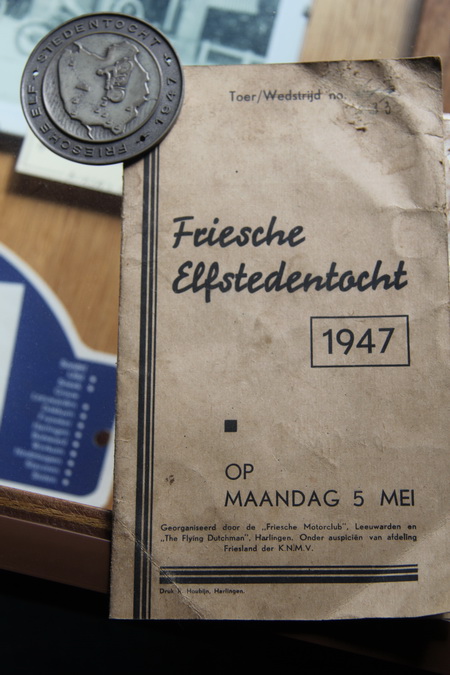 Op maandag 5 mei 1947 werd de Friesche Elfstedentocht voor motoren georganiseerd. Penning + deelnemersboekje, om af te stempelen.