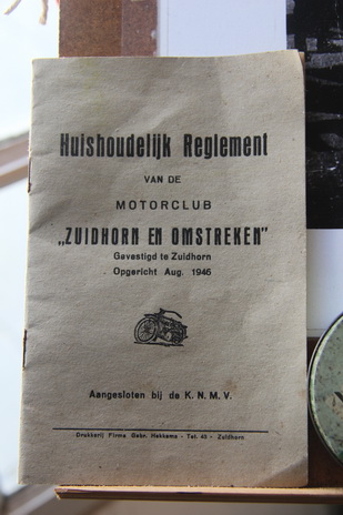 Rechts het Huishoudelijk Reglement van de motorclub die in augustus 1946 werd opgericht en ook was aangesloten bij de K.N.M.V.