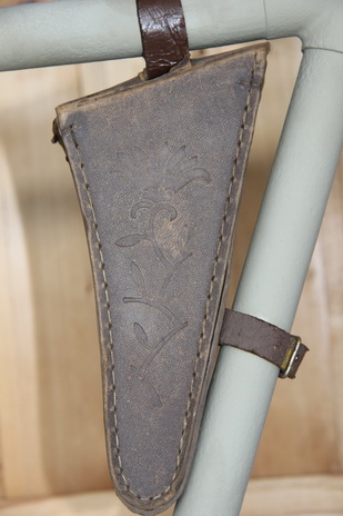 Een heel oude racefiets, meer dan 100 jaar oud. Prachtig fietstasje onder het zadel en mooie vormgeving!