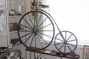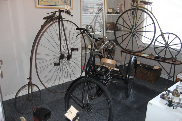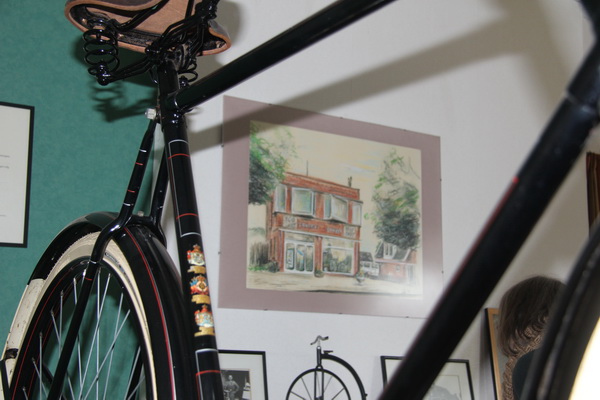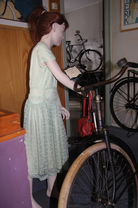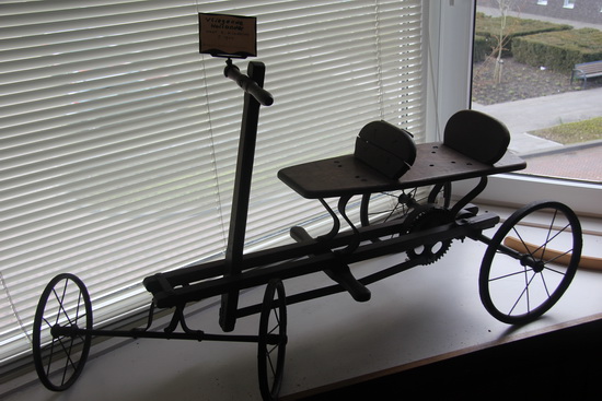 Hier staan de vélocipèdes en een driewieler. Ooit klom burgemeester Sybesma op zo’n bijzondere fiets (die met dat grote voorwiel) om het nieuwe Zuidhorner zwembad “De Dobbe” te openen….. Begin jaren zeventig?!