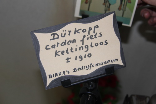 Nog een oldtimer in het Fietsmuseum Birza. De oldtimers worden trouwens verkocht om ruimte te creëren voor meer fietsonderwerpen. (Het huis aan de zuidkant staat op de nominatie om te worden verkocht….)