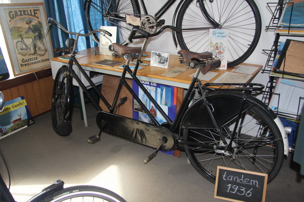 Een prachtige oude tandem uit 1936. We hebben ook twee keer een tandem meegehad op schoolreis met de oudste combinatiegroep van OLS Noordhorn. We hadden toen Edward Bouwman als leerling op school, adoptiezoon in het gezin van kachelmaker Bouwman (in de winkel waarin nu grutterij Bos zit, vroeger woninginrichter Reytenbach). Edward was lichamelijk gehandicapt, maar kon wel achterop de tandem mee. Stevige klus voor ouder/begeleider Roelof van Dijk destijds!