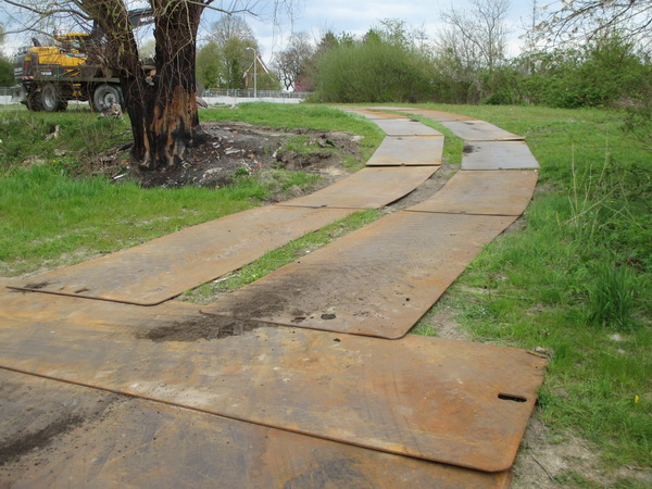 Vanmiddag toch nog een wandelrondje gemaakt.. Goed dat mijn vrouw erbij was, ik had zelf niet eens gezien dat er bij de rotonde “iets aan de hand” was. Paaltjes in drietallen, plantgaten, rijplaten, een Mechielsen-machine….. Wordt het dan toch nog BOOMPLANTDAG bij de verlegde weg?!