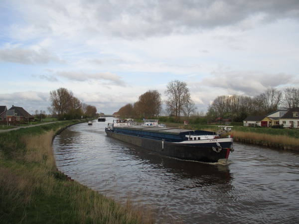 Drukte op het Van Starkenborghkanaal… De “Jordi” haast zich de tafelbrug te passeren; rechts van de “Jordi” is een binnenvaarder op weg naar de vaste hoge brug. In de verte naderen klein en groot….