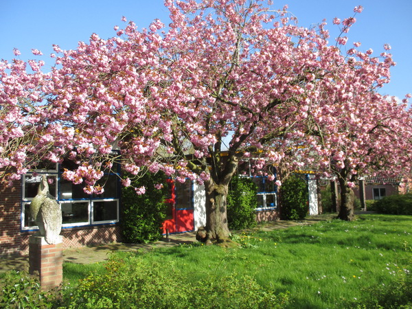Voor de regen de kijkpret kan bederven: De in bloei staande prunussen bij De Molshoop, sinds 1956….