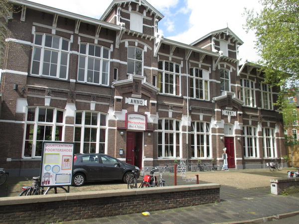 Het voormalige schoolgebouw, nu wijkcentrum “Poortershoes”.