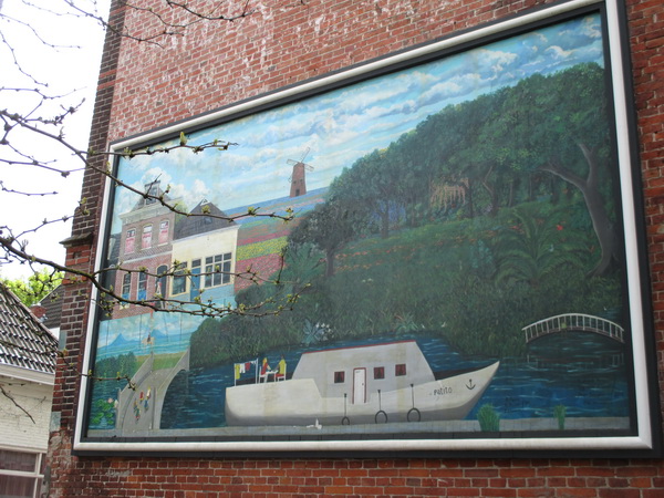 Schilderij aan de muur van het belendende perceel aan de zuidkant…