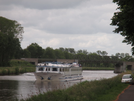 Foto’s van vanmiddag, zo tegen een uur of 1. Ik zag een grote boot naderen en wilde wel even kieken… En daarna ook maar het afleveren van (nog meer….) zand bij garage Pijpker op de foto gezet.