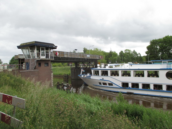 Daar gaat ie, op weg naar de vaste, hoge en niet eens meer nieuwe brug…..