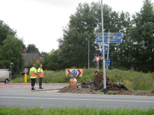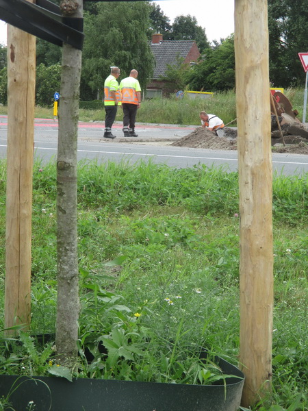 De verhouding tussen de verkeersregelaars en de wegwerker is prima, rekenkundig 2 : 1…..
