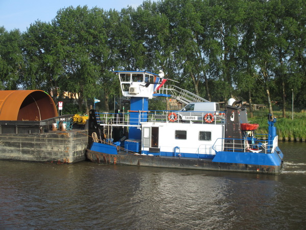 De bak van De Jong wordt aangeduwd door de “Taurus”, “De Stier” in gewoon Nederlands. Met een stuurhut die omhoog en omlaag kan….