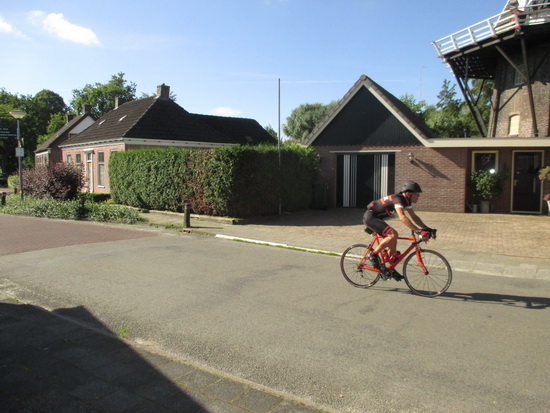 Nee, geen toeschouwers die rijen dik de renners staan aan te moedigen. Hier zit het plezier in het deelnemen en moet je het doen met bijvoorbeeld de vriendelijk-verbaasde blik van iemand die de hond uitlaat….