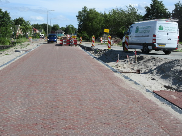 Hier waren de stratenmakers vorige week al bezig, zullen intussen al wel een eind zijn opgeschoten, al was het niet de hele week ideaal stratenmakersweer….