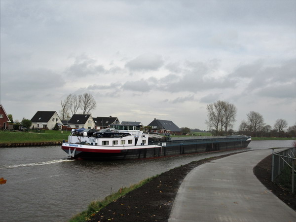 Vanuit het westen nadert een forse binnenvaarder, “Maria”. De ambulance links heeft een andere route gekozen.