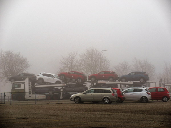 Parkeerterrein Koopman Transport met auto’s die rijden en auto’s die zich laten rijden….