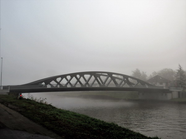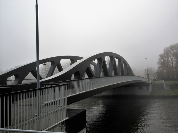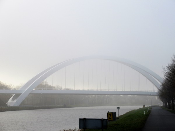 De spoorbrug, ook indrukwekkend tegen een mistige achtergrond.