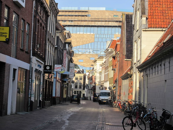 Groningen, Peperstraat met op de achtergrond het imposante bouwwerk dat wordt geprezen/verguisd als het FORUM….