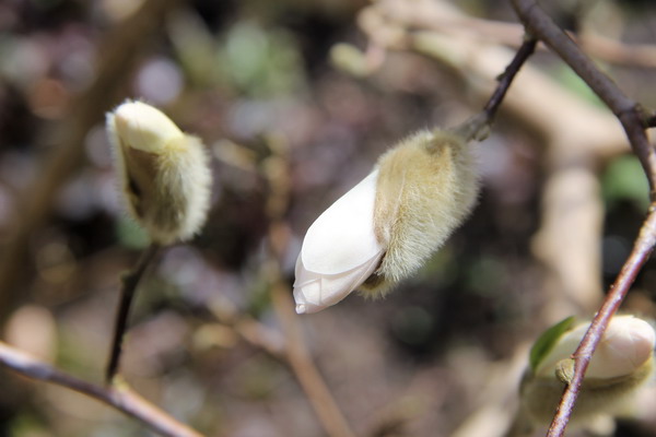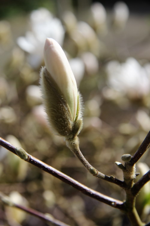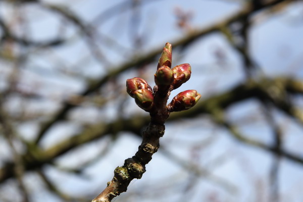 In welke gedaanten kun je de lente verwelkomen? Hier de groeiende bloemknop van de krentenstruik.Hier raakten de vormen mij het meest, al weet ik de naam van deze plant ‘even’ niet meer….Longkruid? Prille bloempjes, maar ze worden zeer op prijs gesteld!Een magnolia, maar welke? Zwellende bloemknoppen…Ook bij de prunus zie je de talrijke knoppen zich verlustigen in het uitbotten. Kon wel eens vroeg zijn dit jaar…De meidoorn die de laatste jaren niet in goede doen was, hebben we uit zijn lijden verlost.