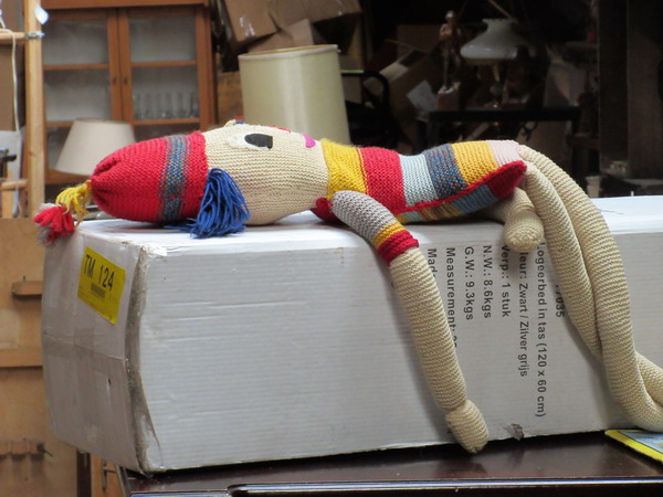 Op zaterdag 30 maart jl. was het heerlijk weer, op de fiets naar Enumatil, langs het Hoendiep. Daar een bezoekje gebracht aan “De Snuffelschuur” van Blaauw en Ploeger, alleen open op zaterdag van 10.00 tot 16.00 uur.Een keur aan kleine en grote al of niet begerenswaardige voorwerpen, ’t is maar net wat je zoekt….De foto is helaas niet helemaal scherp, iets te haastig geweest…. De beeldjes spreken ook zo wel voor zich….Fraaie pierlala die uitrust van wat voor vermoeienis dan ook….